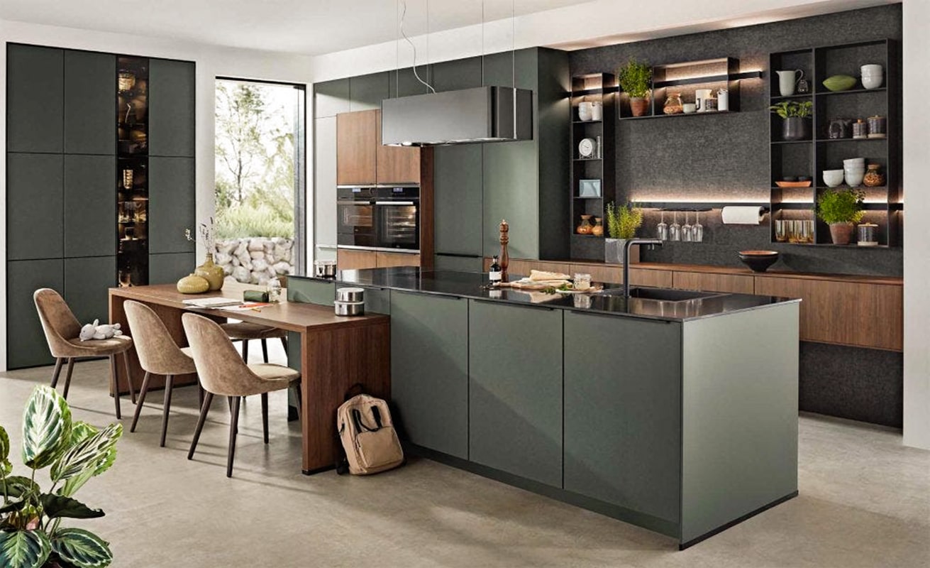 هذا مطبخ ألماني فاخر بلمسات حديثة وتصميم مفتوح